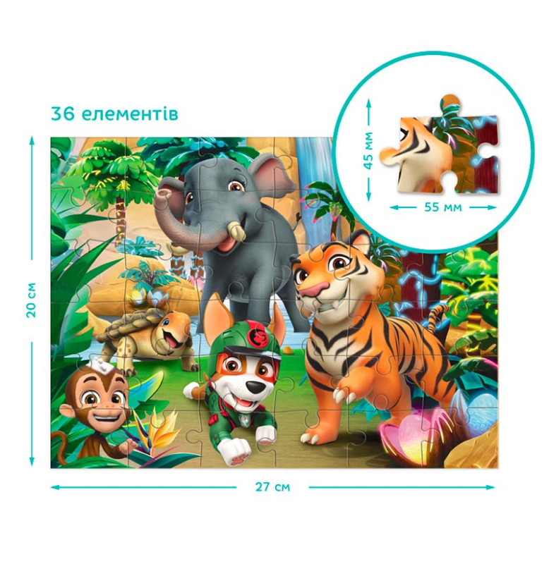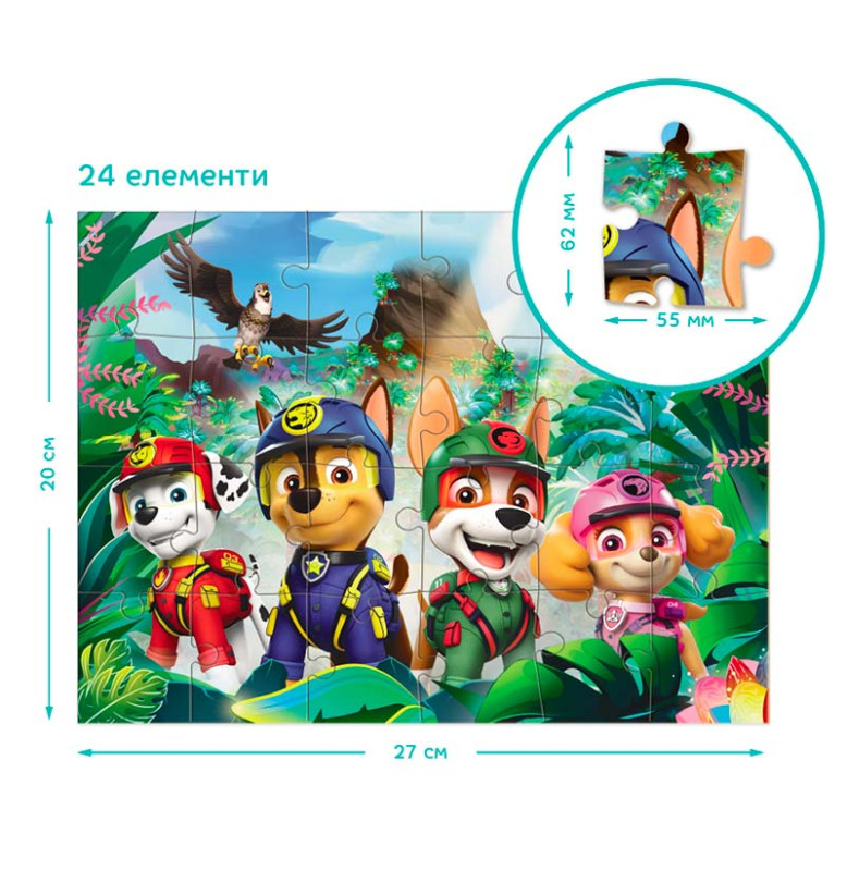 Пазл "Paw Patrol: Приключения в Джунглях" станет отличным подарком для маленьких фанатов смелых щенков и их увлекательных историй. Это идеальный выбор для веселого времяпрепровождения, которое подарит множество часов удовольствия и обучения!