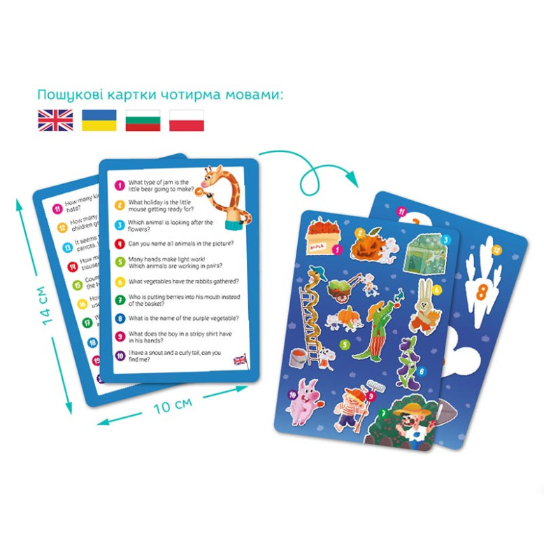 | Комплект поставки | 60 елементів, 8 двосторонніх карток |