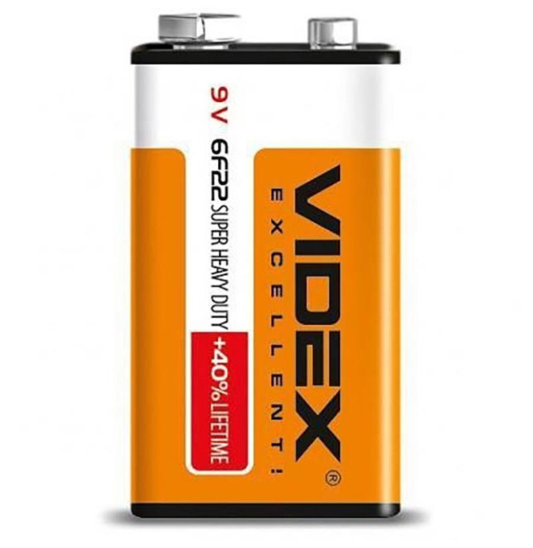 6F22-1S Батарейка сольова Videx 6F22/9V (Крона) 1pcs SHRINK