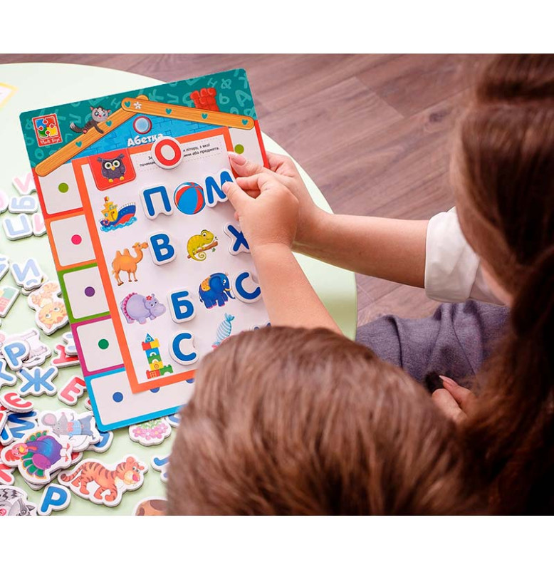 Світ абетки неймовірно цікавий! За допомогою букв можна складати слова, писати та читати речення! Це дуже важливо, адже читати - означає розуміти! Виконуючи завдання та граючись із магнітами з набору, малюк навчиться розпізнавати літери, голосні та приголосні звуки, працювати над запам'ятовуванням алфавіту, а також зможе розвинути уяву, мислення, мовлення, пам'ять, дрібну моторику рук і посидючість. Придумуйте також свої власні завдання та виконуйте їх на спеціальній дошці! Складайте слова та речення! Усі магніти об'ємні. Їх легко кріпити, знімати та переміщати по магнітній поверхні. А також зручно тримати дитячою ручкою.