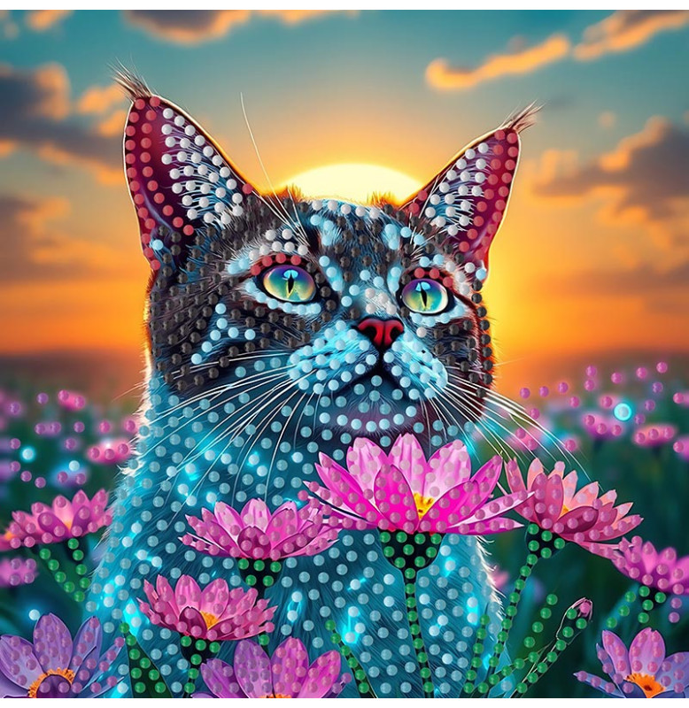 Алмазная мозаика Strateg ПРЕМИУМ Кот в поле на бумажной основе размером 18х18 см (ZAV1818-8)