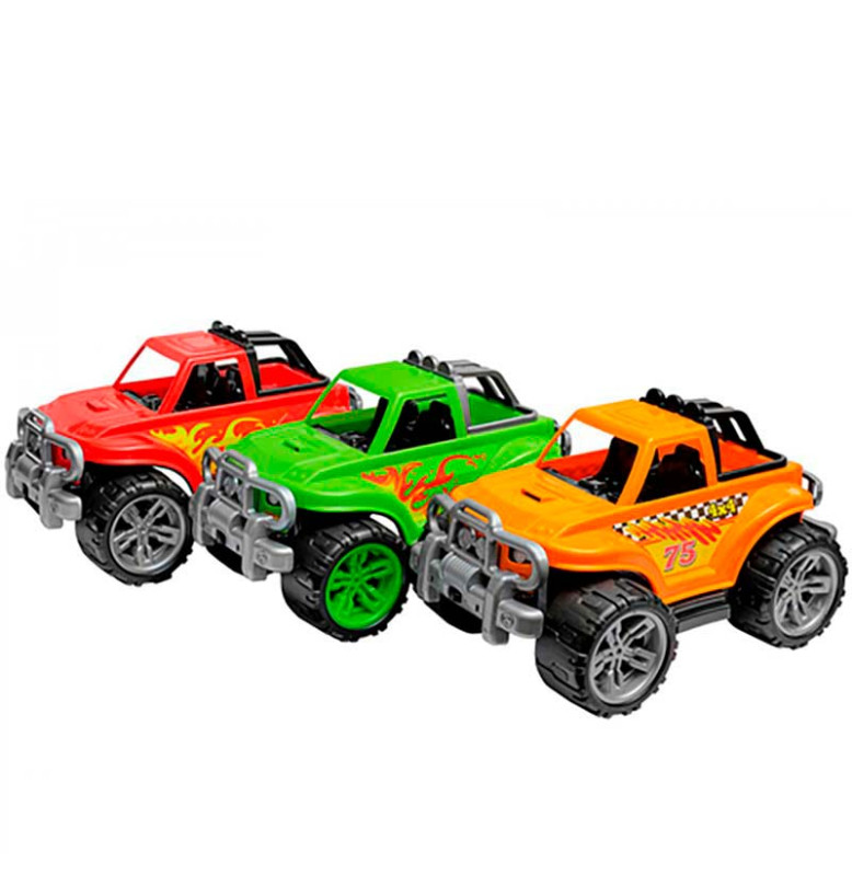 Новая машинка – это, пожалуй, самый желанный подарок для каждого мальчика. Именно для поклонников джипов предлагаем игрушечный спортивный внедорожник с открытым кузовом и массивными бамперами-кенгурятниками. На машине большие колеса с ярким протектором, легко преодолевающие разные препятствия. В салоне автомобиля можно разместить небольшие игрушки и взять их с собой в путешествие. Интересный динамический дизайн внедорожника непременно привлечет внимание детворы к игрушке. Цветовая гамма и яркие наклейки придают игре особый драйв – так дети представляют себя супер героями. Различные сюжетно-ролевые игры развивают детское воображение, мышление, координацию и мелкую моторику. Играя в кругу друзей, дети улучшают коммуникативные и социальные навыки. Оптимальные размеры игрушки для использования в комнате, так и для игры на улице. Устройте Вашему малышу незабываемый праздник, подарив ему давно вожделенный джип. Подарок принесет немало положительных эмоций и родителям, ведь радость ребенка – главная награда. Изготовлен из безопасных качественных материалов без запаха. Автомобиль прочен и надежен. Игрушка для детей от 3 лет.