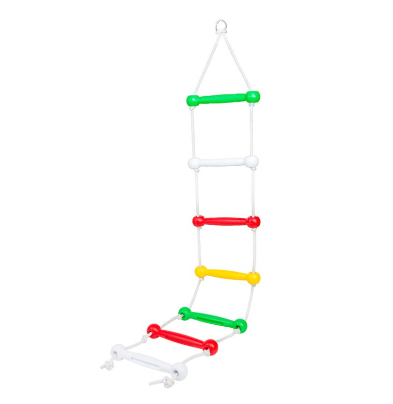 - Легка установка — верхня петля-кільце дозволяє швидко повісити драбину на турнік, дерево або ігровий комплекс.