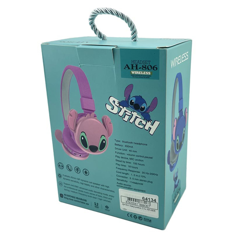 Веселе та безпечне рішення для прослуховування музики, казок та онлайн-уроків. Дизайн з улюбленим персонажем Стічем припаде до душі дітям, а продумана конструкція забезпечує комфорт під час тривалого використання.