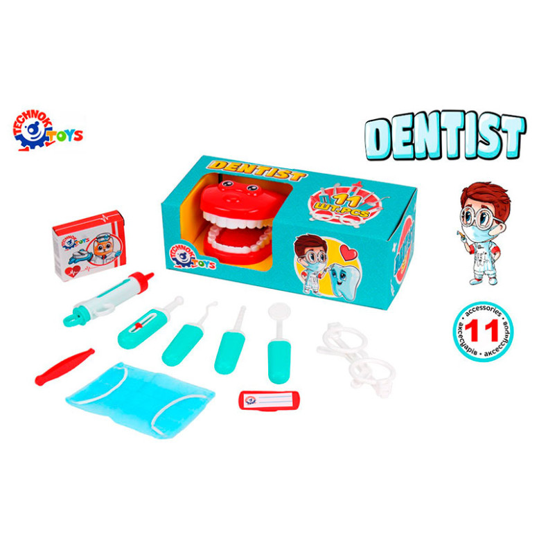Сюжетно-рольові ігри відіграють важливу роль у розвитку дітей, сприяють формуванню соціальних та комунікативних навичок, розвивають фантазію та уяву. Іграшка «Набір стоматолога ТехноК» допоможе малюкам краще познайомитися з професією лікаря, і, що надзвичайно важливо, подолати страх перед відвідуванням стоматологічного кабінету. Ми рекомендуємо погратися цією іграшкою з малюком напередодні візиту до лікаря і розповісти багато цікавого про його зубки. Також наш новий набір зможе стати подарунком після відвідин лікаря за чемну і терпеливу поведінку в кабінеті.