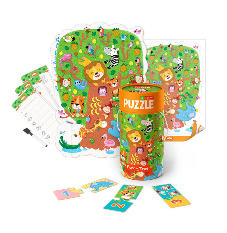Пазл та гра Чарівне дерево - є ідеальним способом для дітлахів не лише вивчити цифри, а й познайомитися з назвами тварин, фруктів та овочів. Рекомендовано для дітей від 3 років. Деталі пазла великі, картон щільний, елементи із закругленими кутами для безпеки малюка. Комплектація: двосторонній пазл - 1 шт., двосторонній постер - 1 шт., пазли міні - 10 шт., маркер для стирання - 1 шт., картки із завданнями - 6 шт.