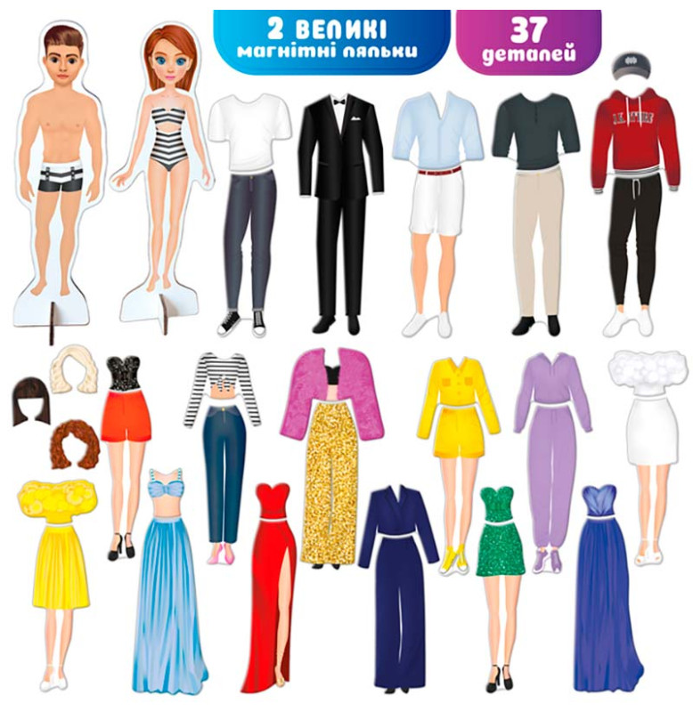 Комплект поставки | 37 магнітів, 2 магн. ляльки з підставками |