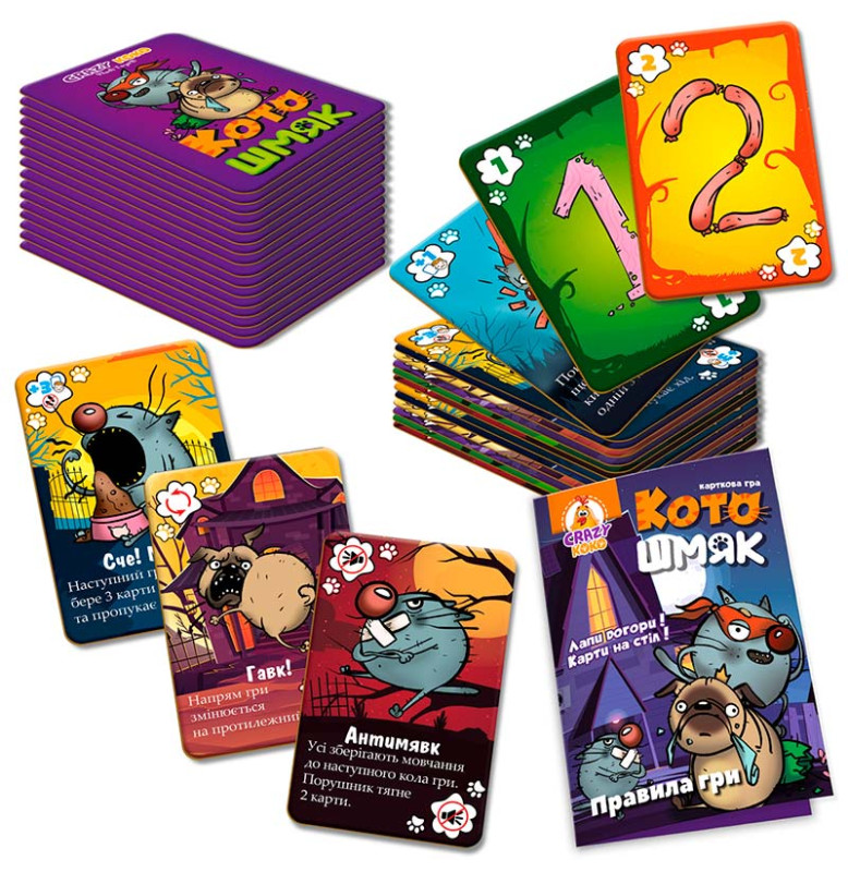 Комплектация: 100 карт (64 карты номиналом от 0 до 7 и 36 карт действий), правила игры.
