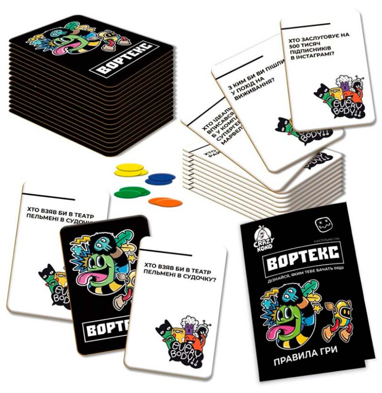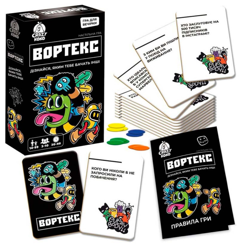 Дізнайся, яким тебе бачать інші. Гра настільна Vladi Toys розважальна “Вортекс” допоможе дізнатися, що про тебе думають друзі, знайомі чи родичі. Читайте по черзі питання з карток і голосуйте фішкою за найкращого кандидата. Колір жетона не має значення, а почуття гумору вітається!