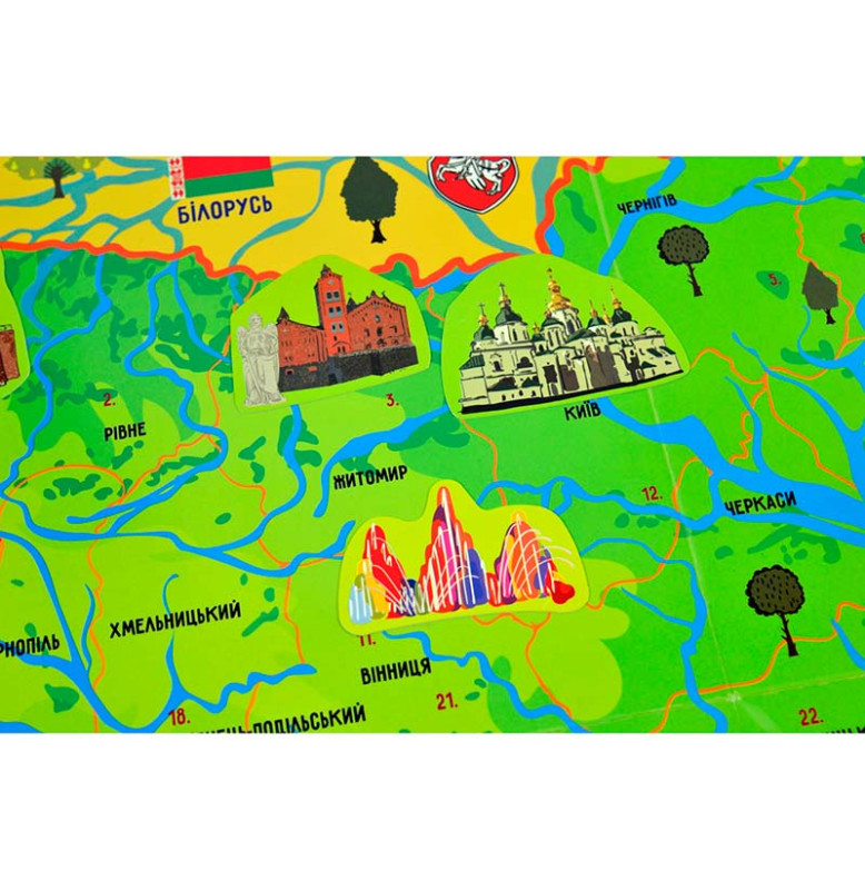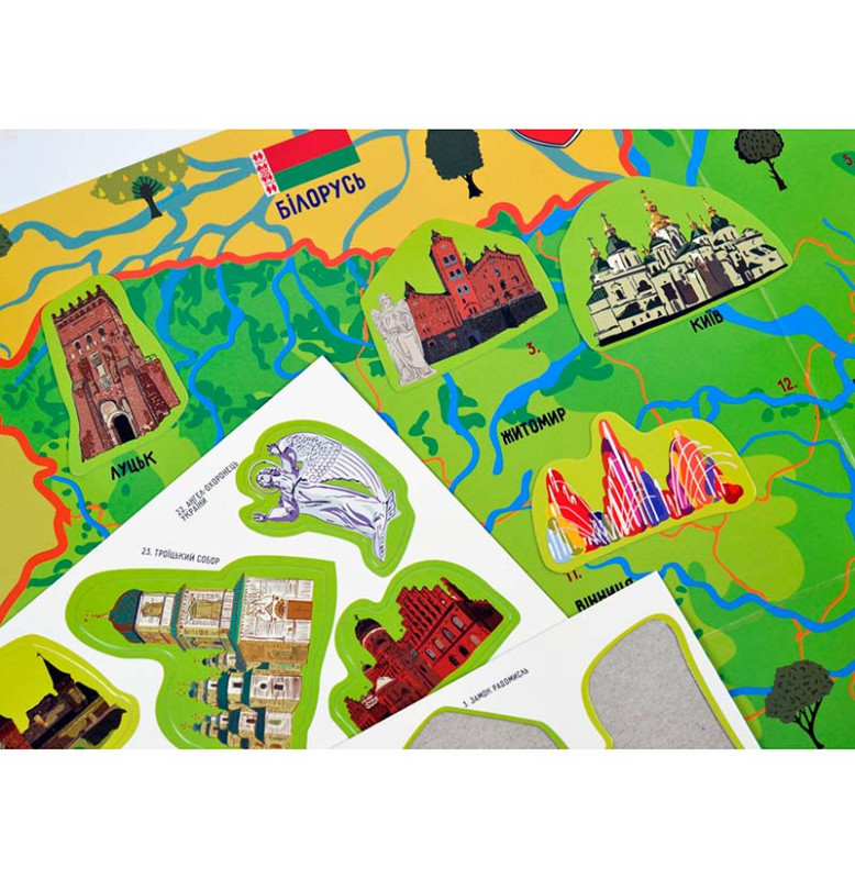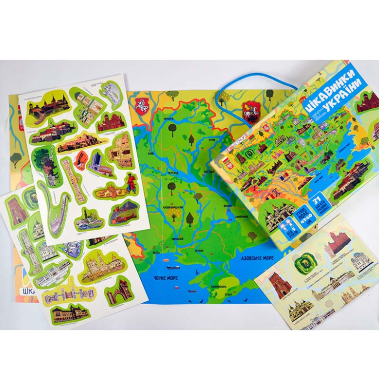 Яскрава та пізнавальна настільна гра, створена для того, щоб весело та цікаво знайомити дітей з різноманіттям України. У центрі уваги — визначні місця, природа, народні традиції та цікаві факти, які можна вивчати через гру та творчі завдання.