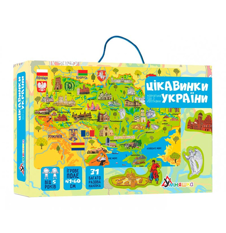 Гра Навчальна Умняшка "Цікавинки України" з багаторазовими наклейками КП-001