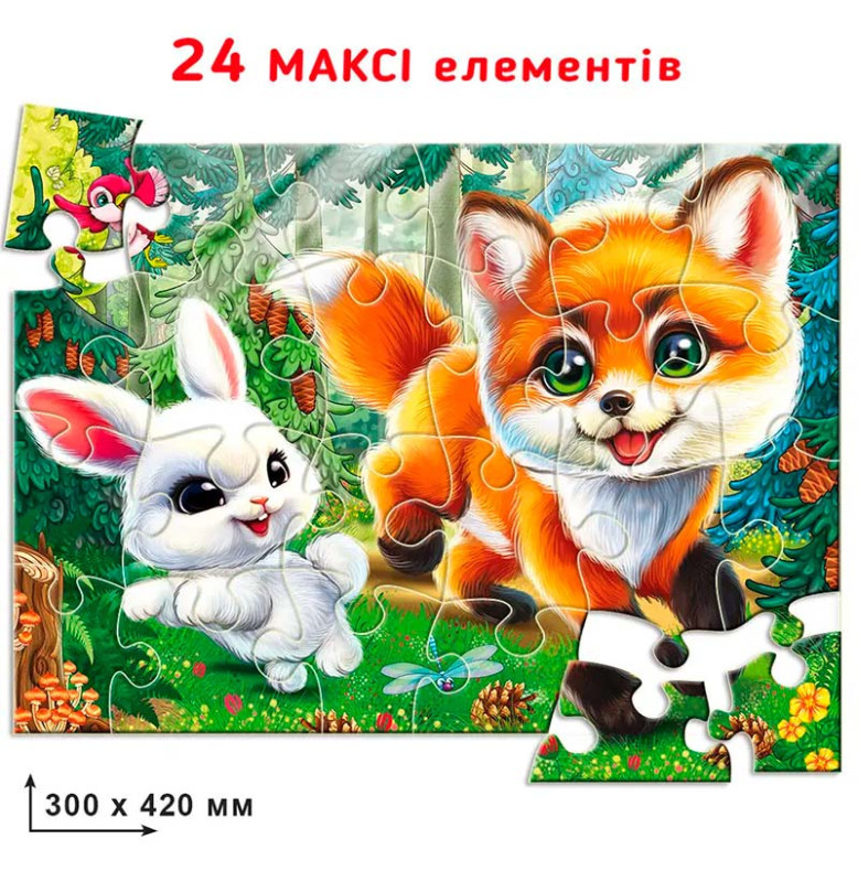 Волшебный пазл с нежной иллюстрацией лисенка и зайчонка приглашает в мир дружбы и маленьких приключений. Каждая деталь создана так, чтобы увлечь внимание ребенка и подарить радость от сложения.