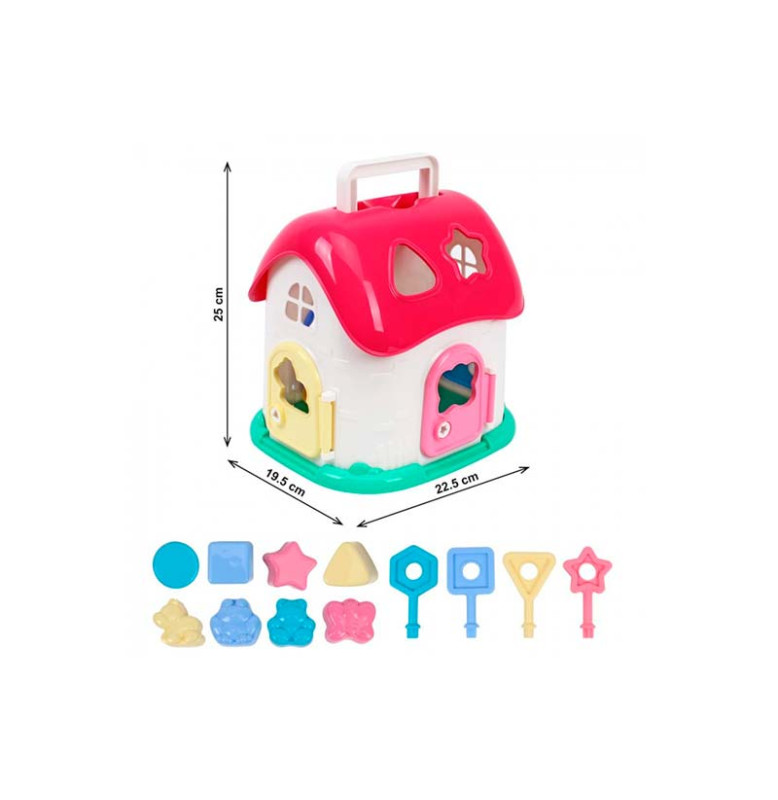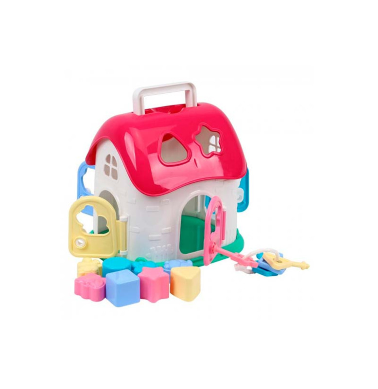 Для удобства переноски домик имеет выдвижную ручку на крыше домика. Это позволяет всегда брать любимую игрушку с собой. Домик велик и вместителен, поэтому его можно использовать как гараж для автомобилей или замок для кукол. Фигурки животных и геометрические формочки можно использовать для игры с водой или песком.