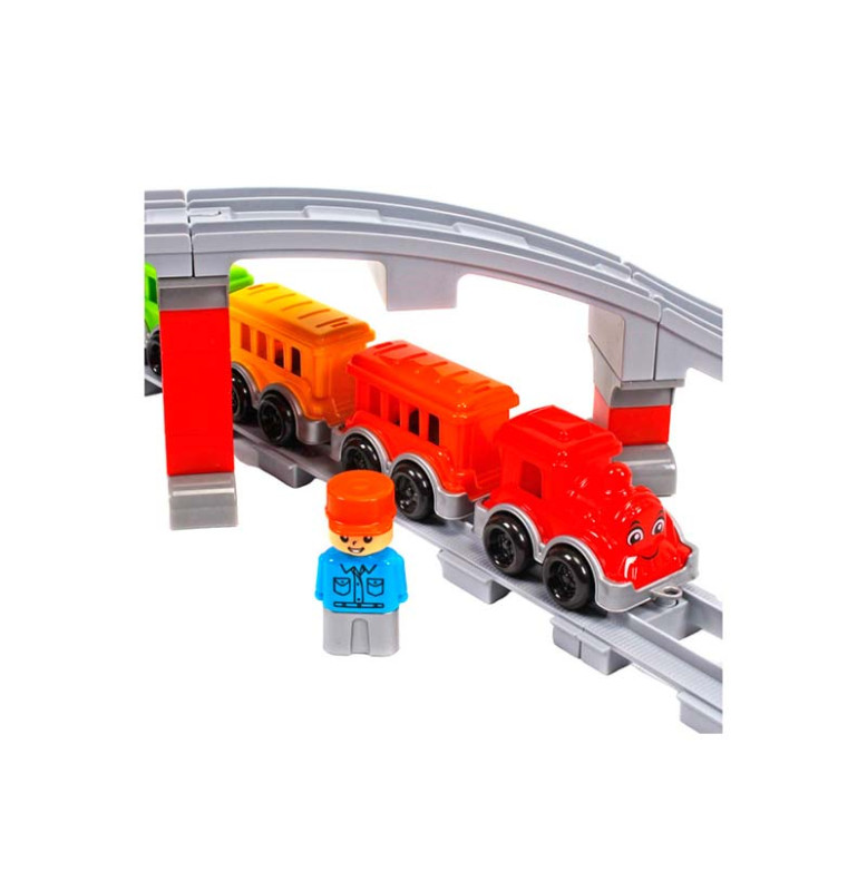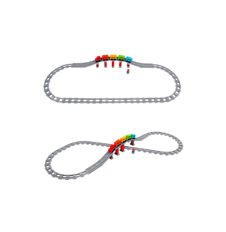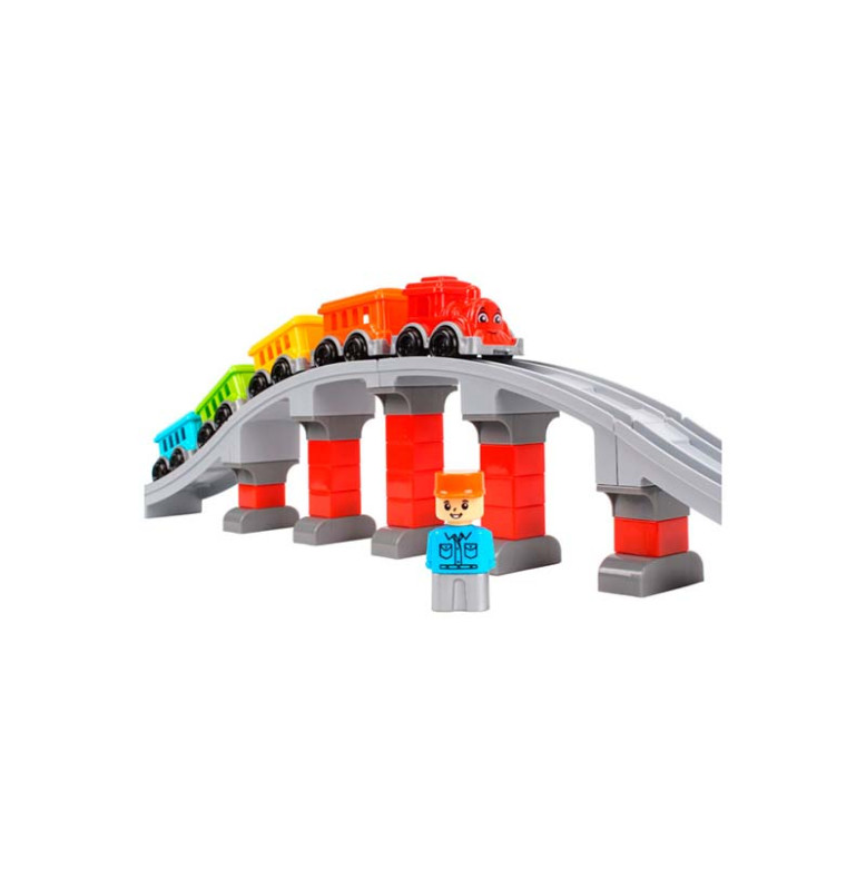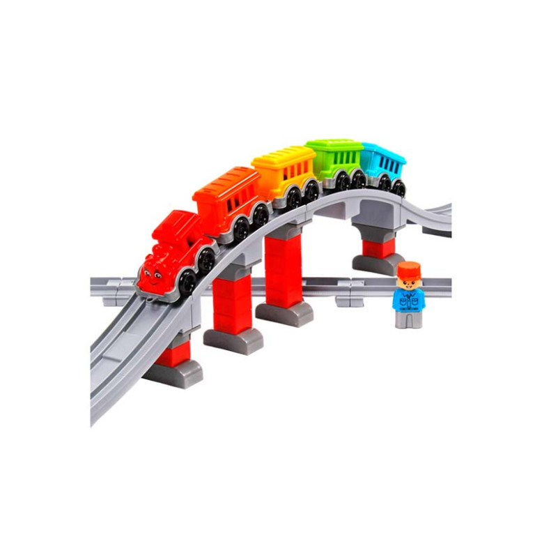 - Безграничные игровые возможности: в набор входит 16 прямых, 8 изогнутых и 2 длинные дуги рельсов, из которых можно построить железнодорожное полотно длиной до 386 см, а при желании — даже до впечатляющих 438 см! Дополняет картину величественный мост с опорами — и ваша собственная железнодорожная сеть готова к приключениям.