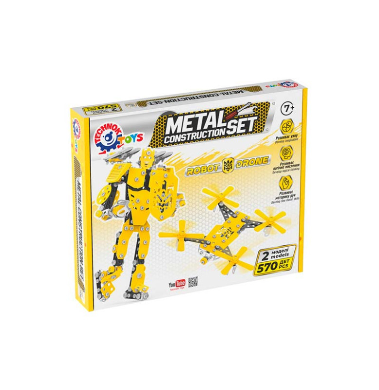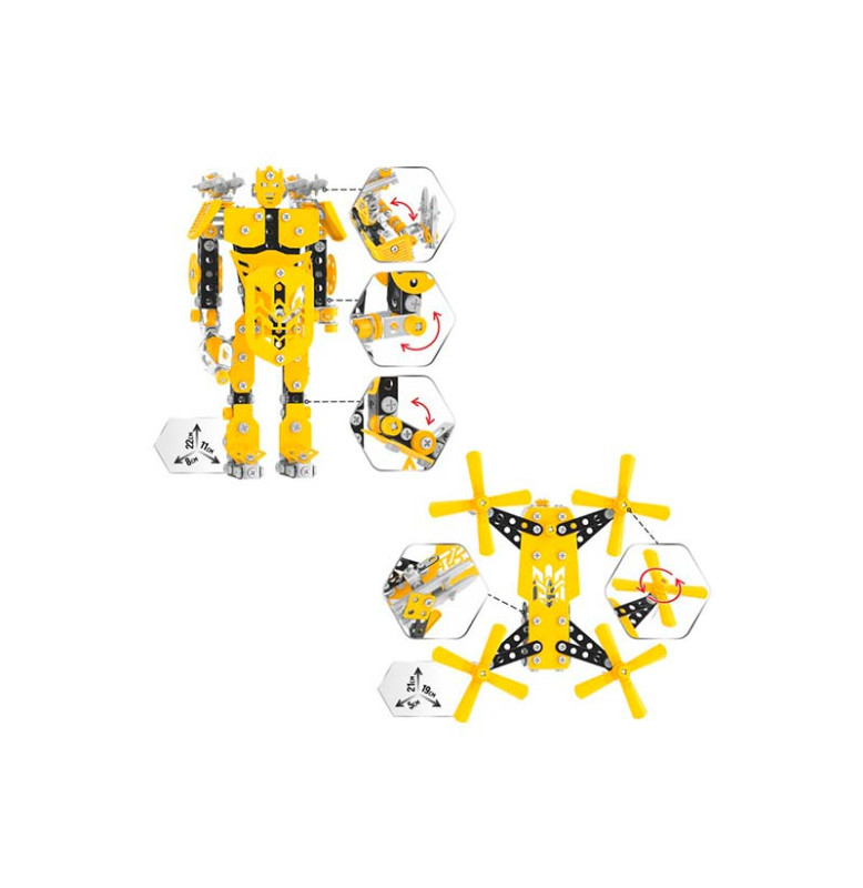 Конструктор Трансформер металлический ТехноК 0136 — это уникальный набор для детей, который сочетает в себе элементы механики и творчества. Он предназначен для детей от 7 лет и включает в себя 570 деталей, из которых можно собрать две впечатляющие модели: робота и дрон.