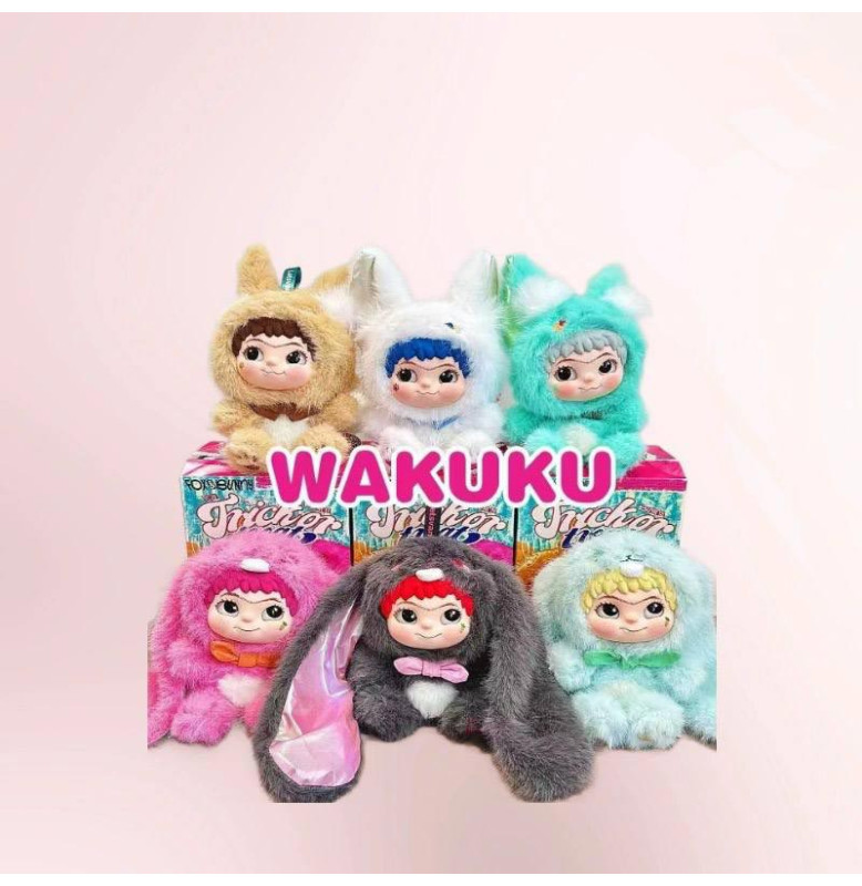 Wakuku — это необычная игрушка-сюрприз, которая сочетает в себе радость открытия и коллекционную ценность. Внутри коробочки прячется мягкий и пушистый брелок высотой 17 см, созданный специально для тех, кто любит яркие и стильные аксессуары.