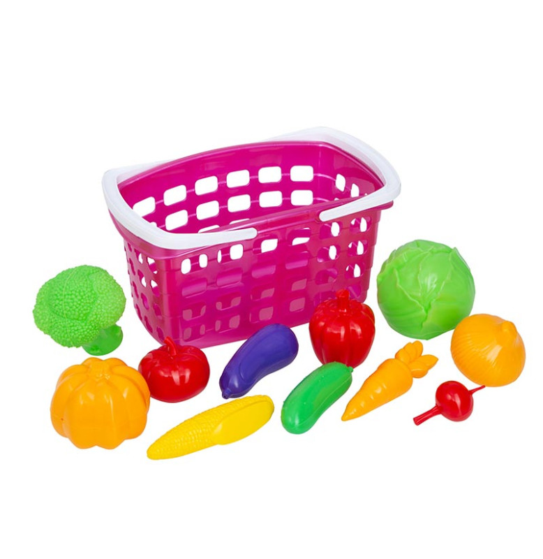 - Іграшкові овочі: броколі, капуста, кукурудза, морква, перець, помідор, огірок, баклажан, гарбуз, редька, цибуля.