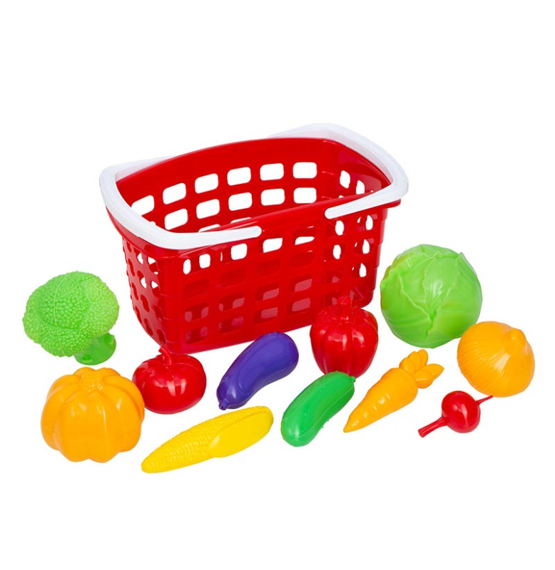 • Іграшкові овочі: броколі, капуста, кукурудза, морква, перець, помідор, огірок, баклажан, гарбуз, редька, цибуля.
