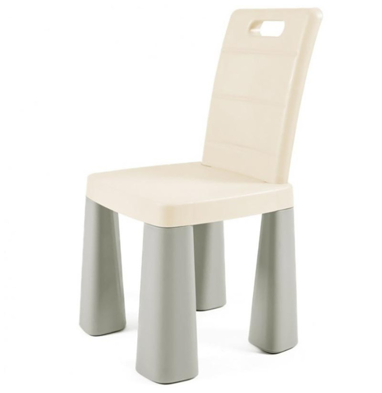 Комплект 04660/10 сірого кольору складається з дитячого пластикового столика та стільця. Особливість стільця – знімна спинка, яку можна замінити заглушкою, перетворюючи його на зручний табурет.