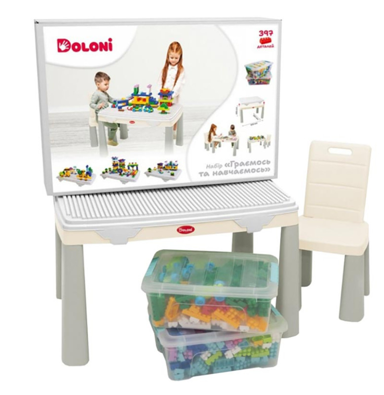 Дитячий набір Doloni 04660/10 – стіл та стілець з ігровою накладкою + 2 набори конструктора