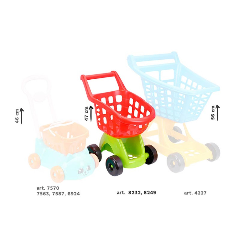 Місткий та зручний візочок стане чудовим доповненням до сюжетних ігор у магазин чи доставку їжі. У нього можна скласти багато різноманітних іграшок, наповнити кошик свіжими овочами, соковитими фруктами та запашною випічкою для смачного сімейного обіду. Вдома чи на прогулянці він зручно слугуватиме для перевезення улюблених м’яких іграшок та ляльок, а дитяча фантазія підкаже ще безліч цікавих сценаріїв гри.