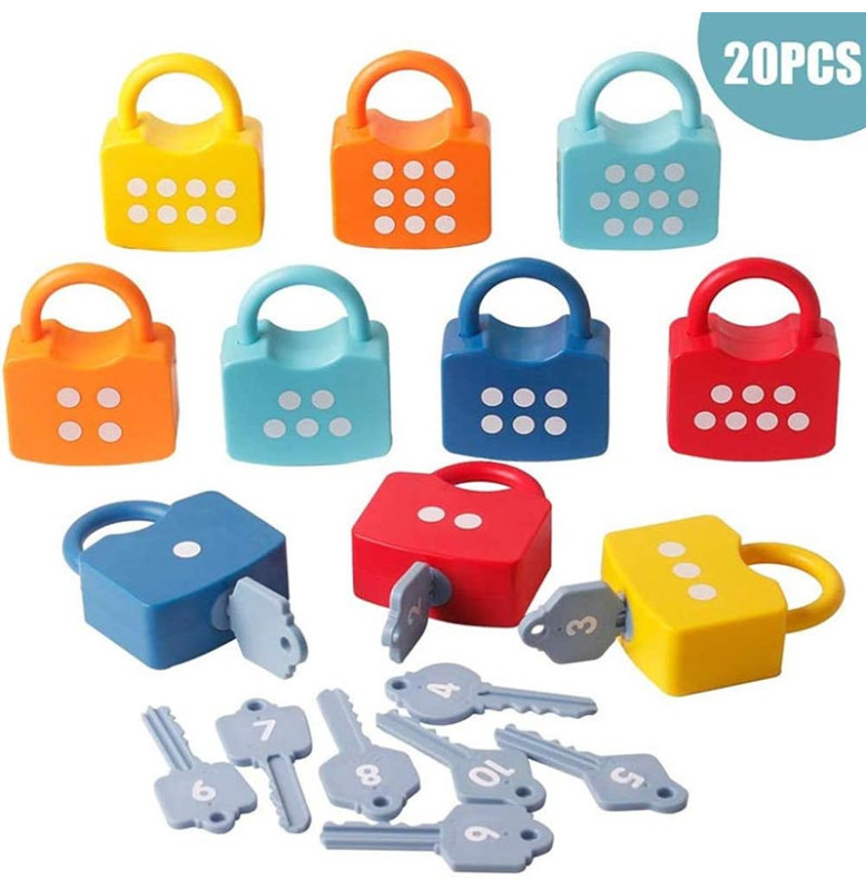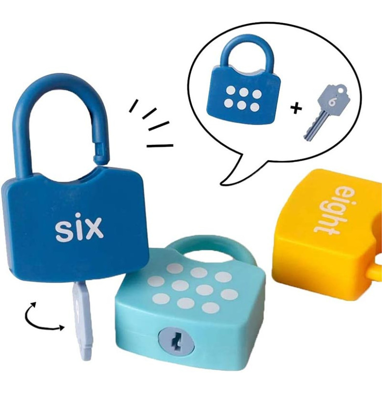 Развивающая игра, сочетающая интересную забаву с нежным обучением: дети знакомятся с цифрами через игру с замочками, развивают мышление и мелкую моторику в процессе открывания, сравнения и сортировки элементов.