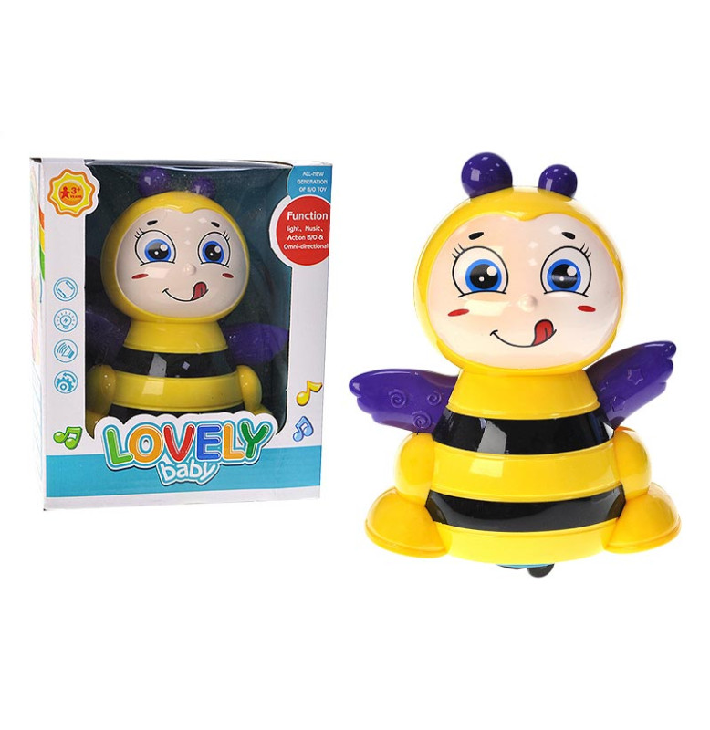 Веселая и любознательная пчелка приносит радость в игру и помогает открывать мир через звук и цвет. Она реагирует на прикосновения и движение, привлекая ребенка к активному взаимодействию и исследованию.