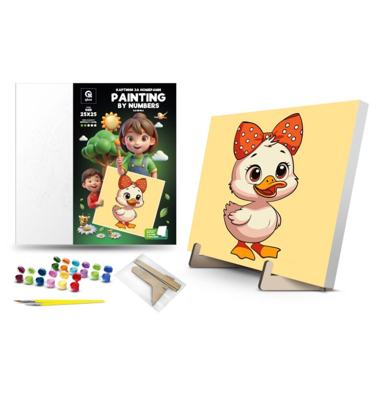 Картина по номерам qbee "Уточка" с деревянной подставкой