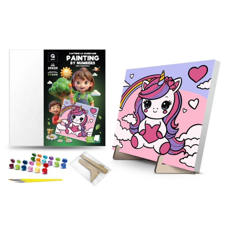 Каритная по номерам qbee "Милая единорожка" с деревянной подставкой 25х25 см. QB900-052
