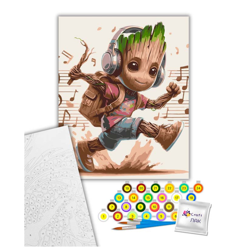 Картина за номерами “Музичний Грут” — це повноцінний набір для створення яскравого витвору мистецтва власними руками.