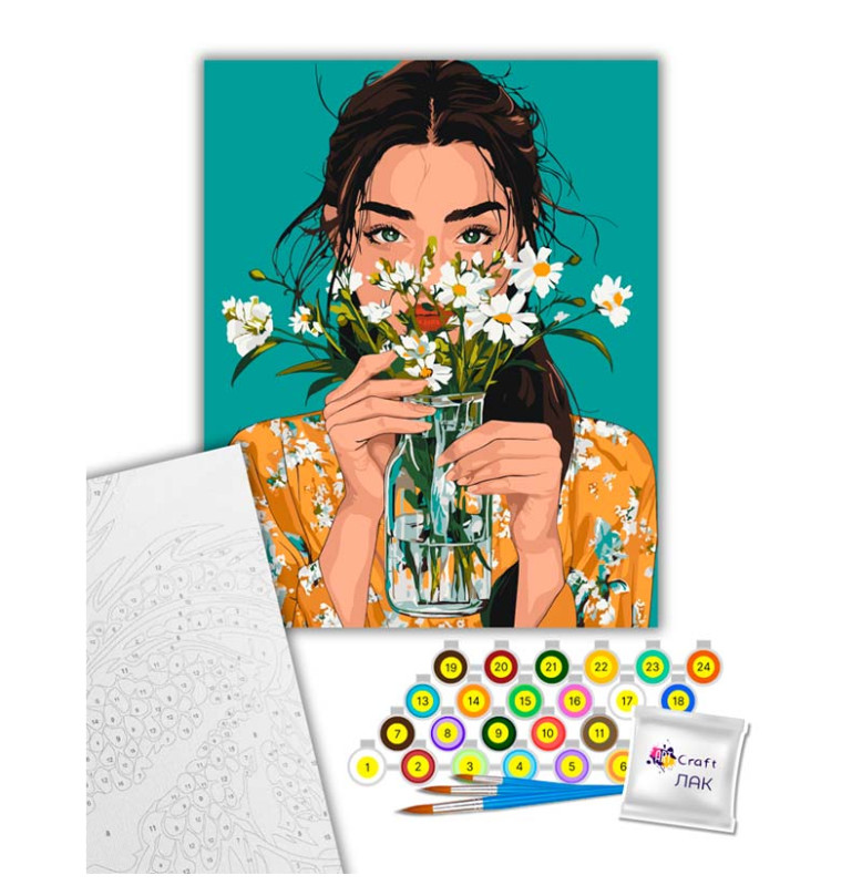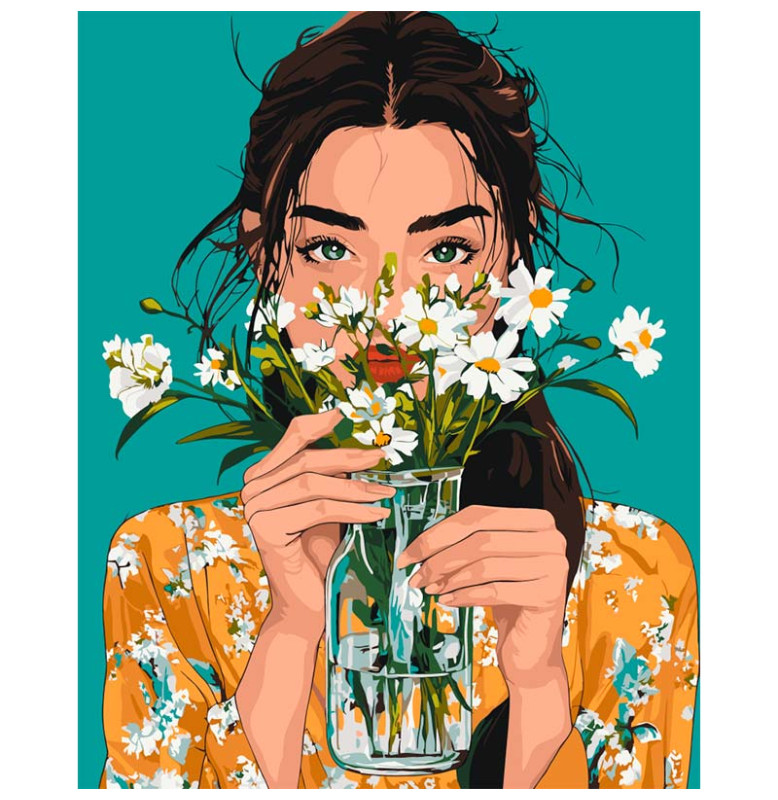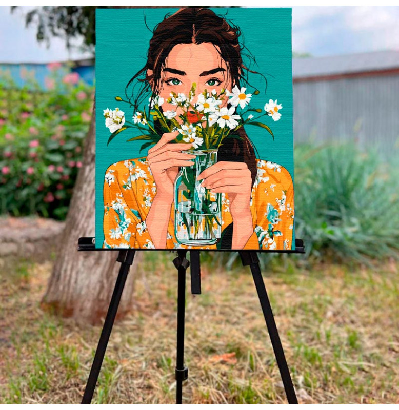 Пориньте в атмосферу спокою й сонячного настрою — ніжний букет ромашок у м'яких відтінках подарує вам миті творчого розслаблення та задоволення від процесу. Цей набір допоможе легко втілити картинку в життя навіть тим, хто робить перші кроки у живописі.