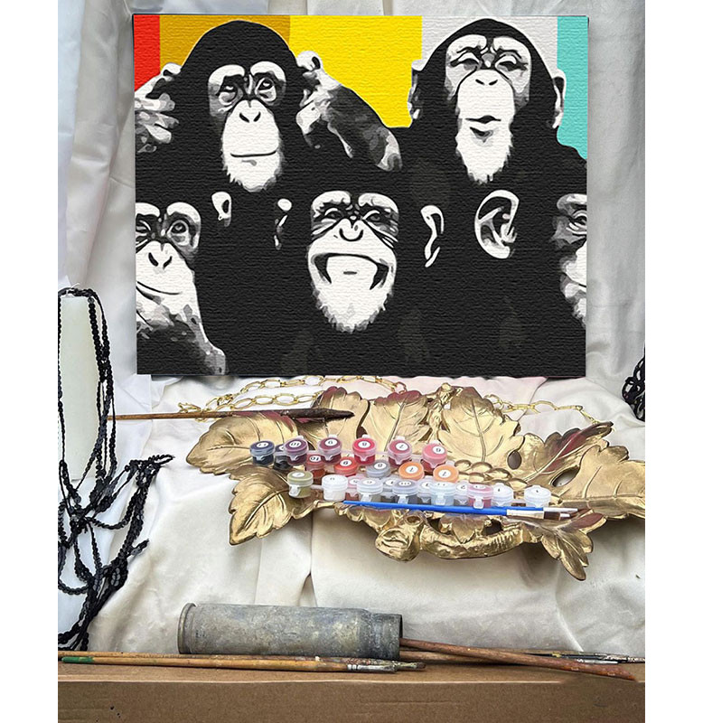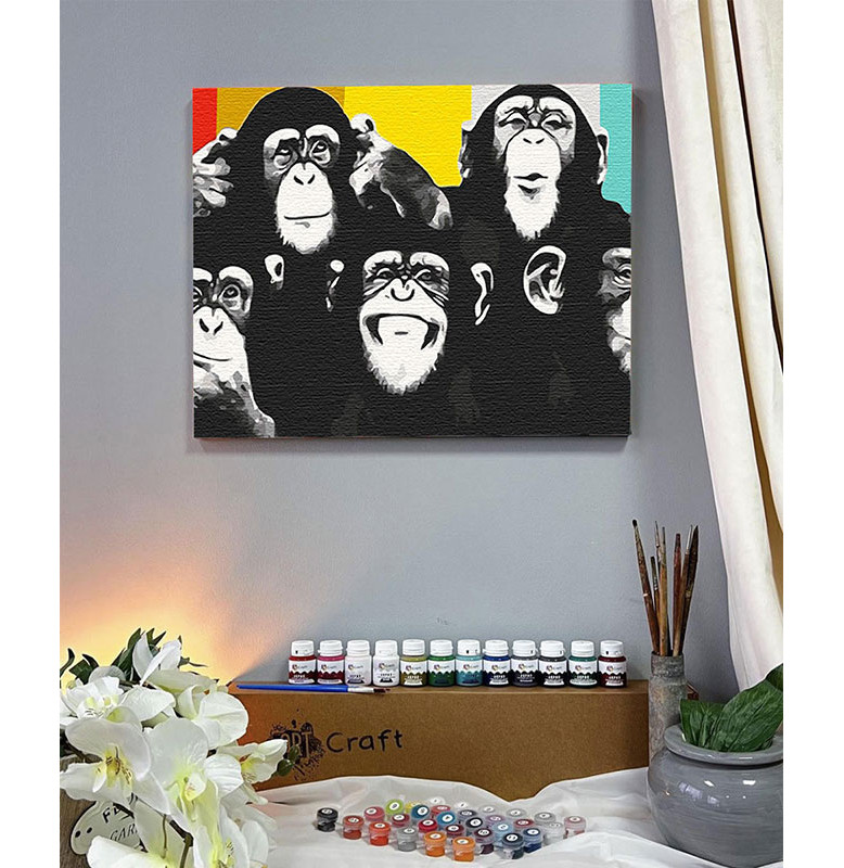 Картина за номерами без підрамника "Веселі шимпанзе" 40*50 см 11510-ACNF