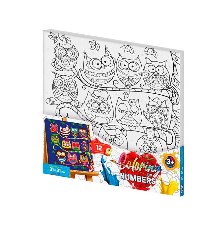 Картина за номерами Danko Toys "Coloring by numbers" Сови на гілці 31x31см CBN-01-03