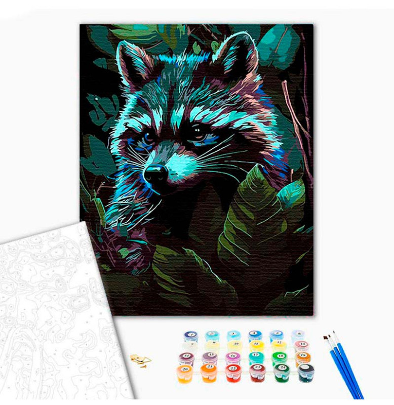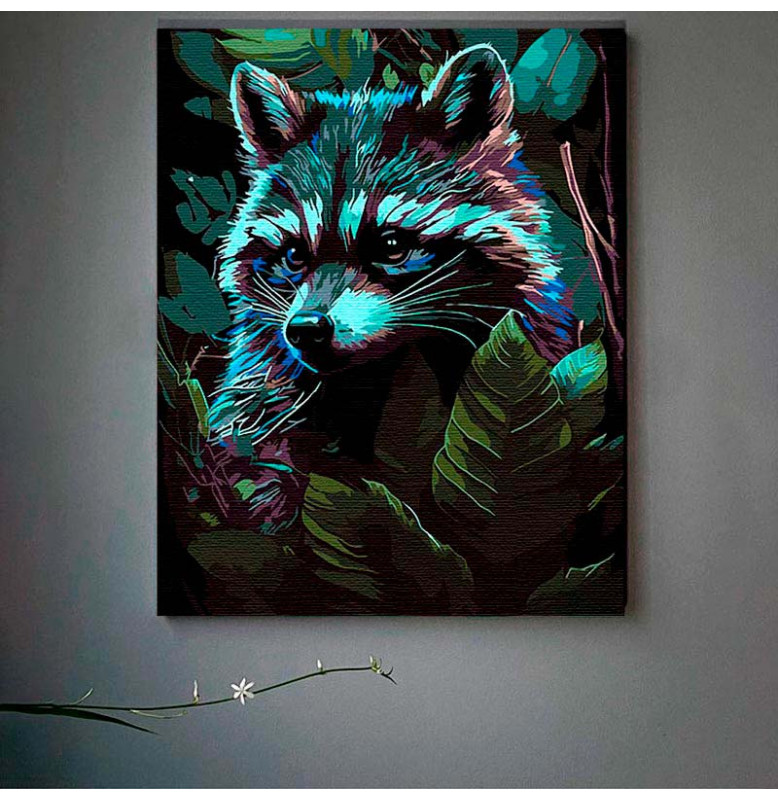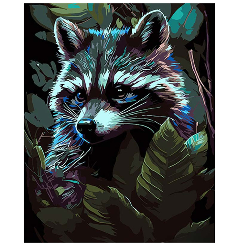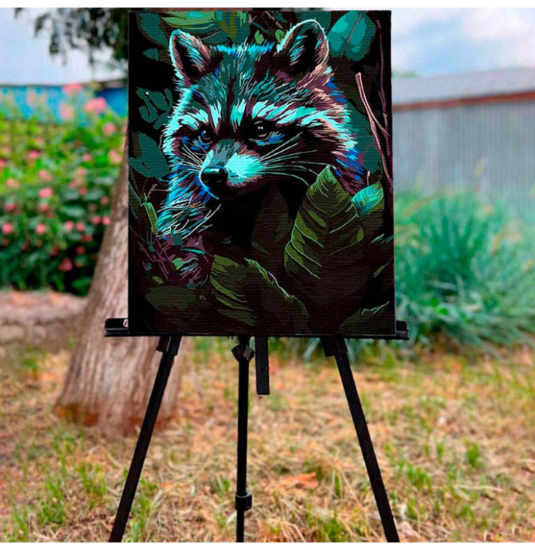 Картина за номерами Єнот серед лісу Strateg на чорному фоні 40х50 см AH1026