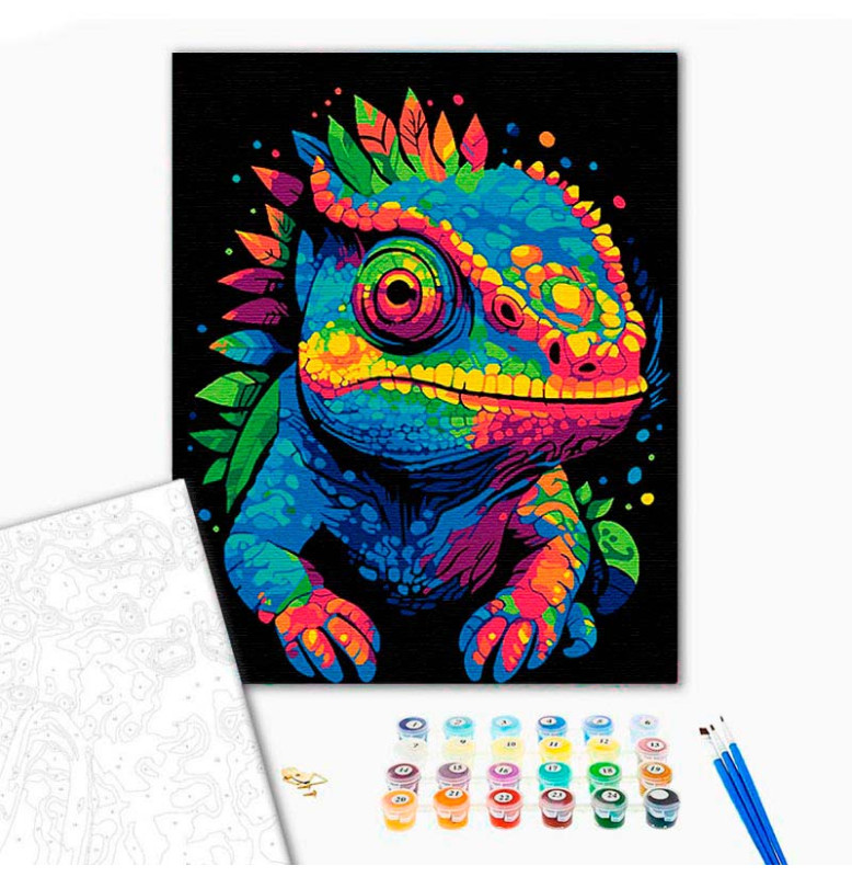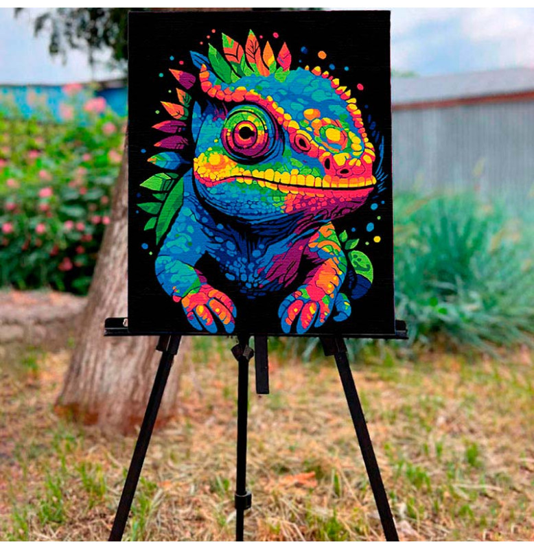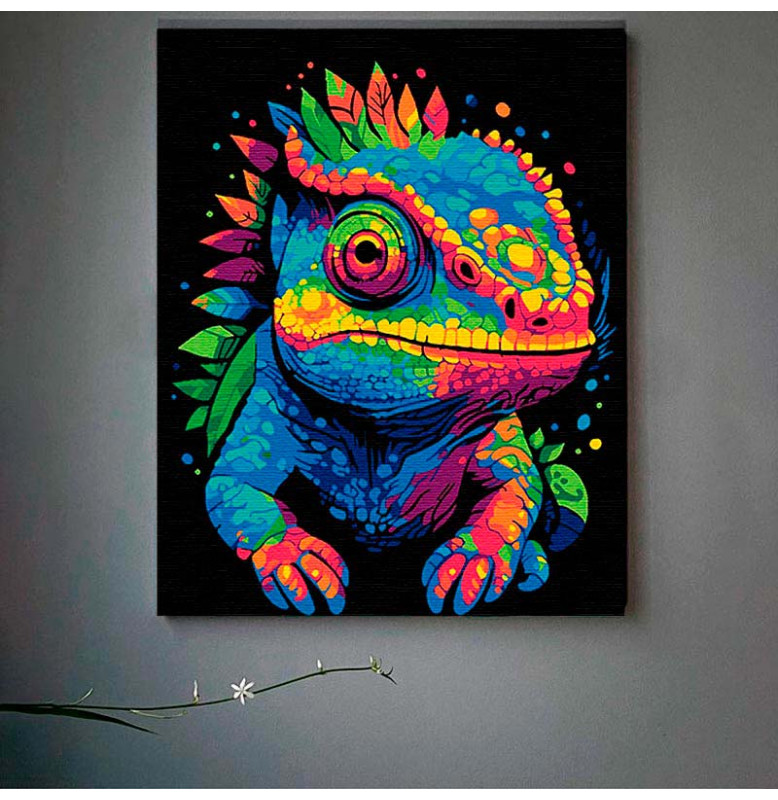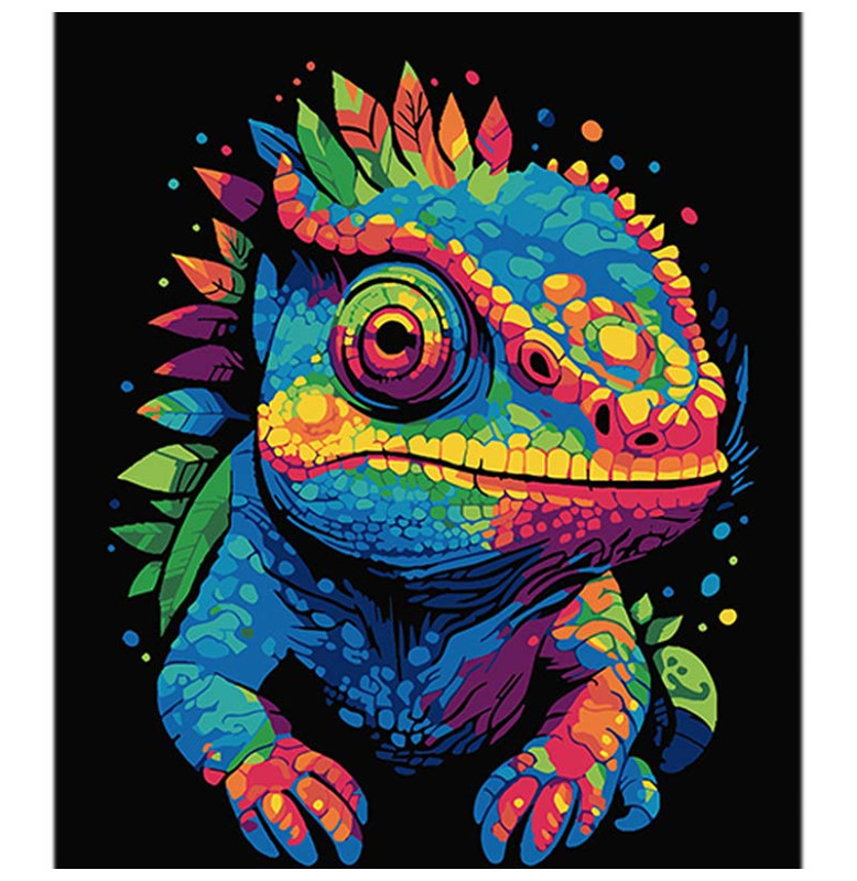 Картина за номерами Хамелеон і калейдоскоп кольорів Strateg на чорному фоні AH1123