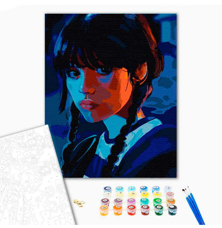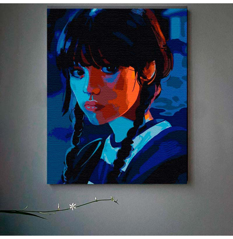 Опис товару: Прикрасьте свій дім цією захоплюючою картиною за номерами, натхненною головною героїнею серіалу Венздей. Ця картина не тільки дивовижно красива, а й являє собою унікальне хобі, яке дасть вам змогу розфарбувати її самостійно, створюючи витвір мистецтва, який прикрасить вашу стіну.