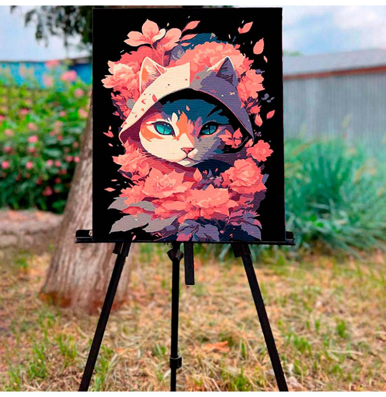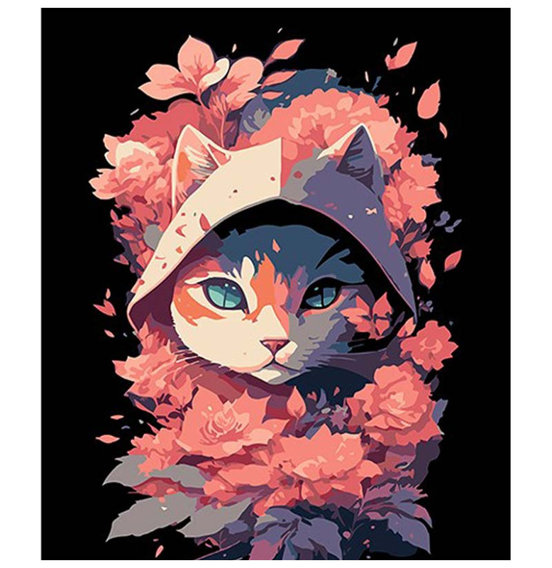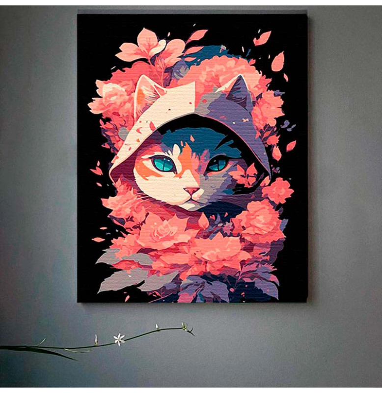 Картина за номерами Кішка в рожевих відтінках Strateg на чорному фоні 30х40 FH-9