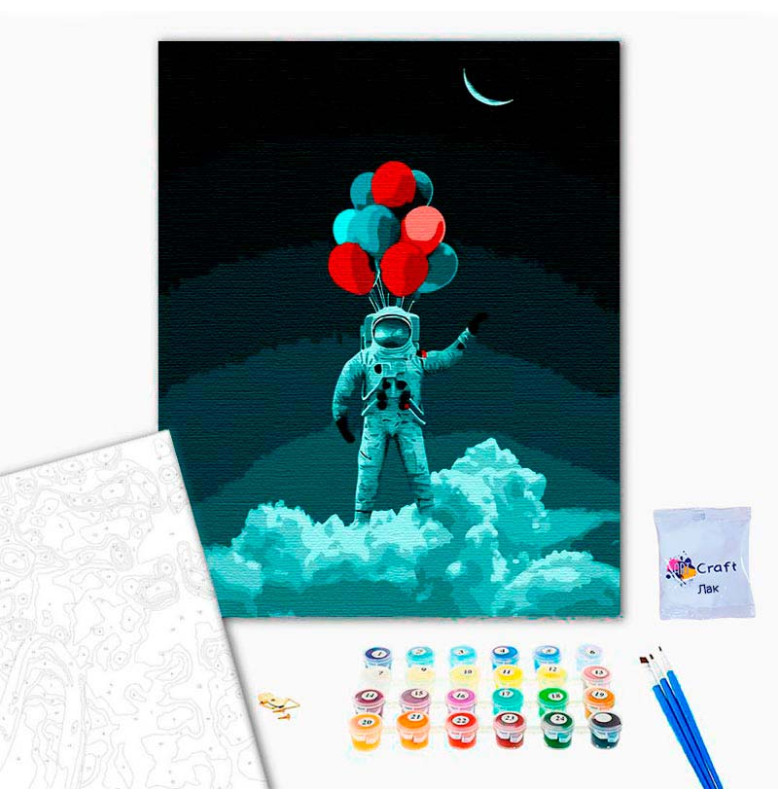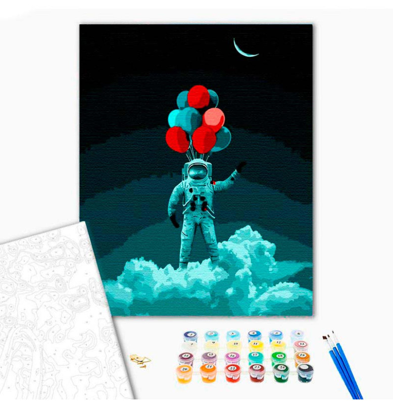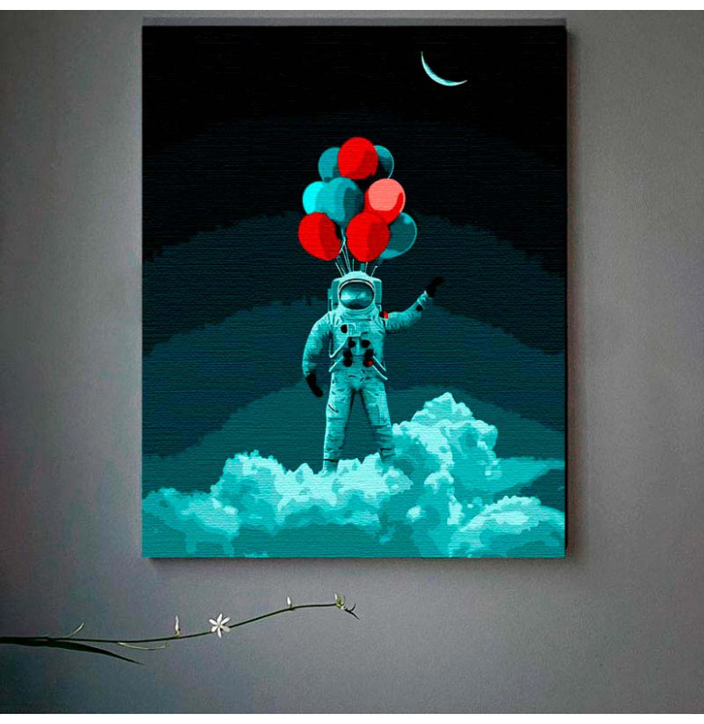 Картина за номерами Космонавт із кульками Strateg 40х50 см DY171