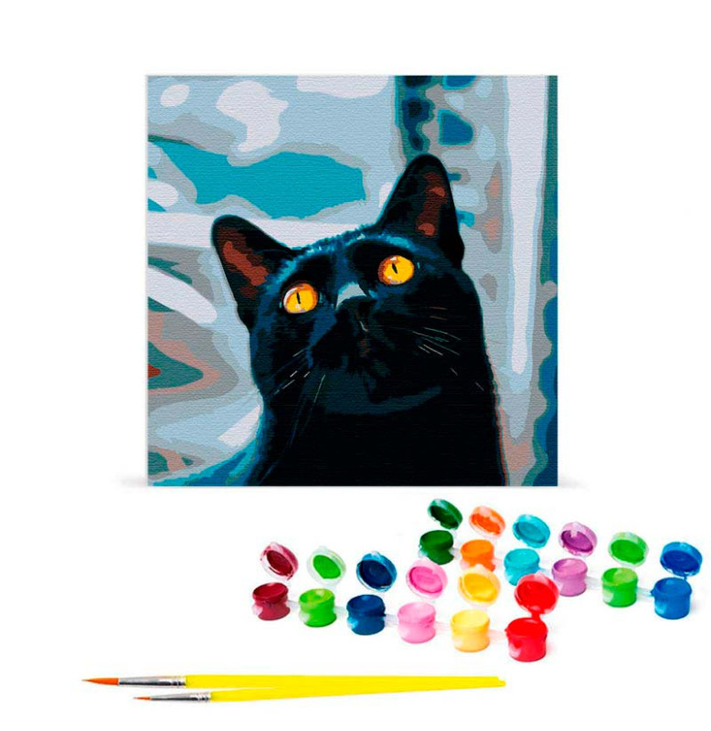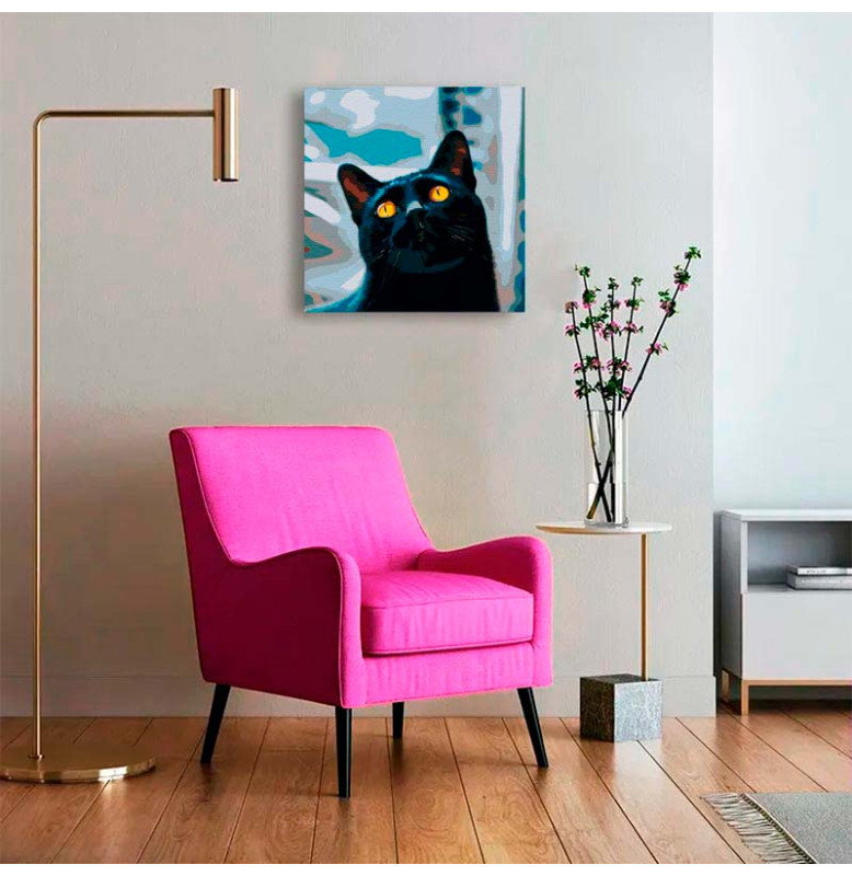 Картина за номерами Котик із жовтими очима Strateg 40х40 см SK022