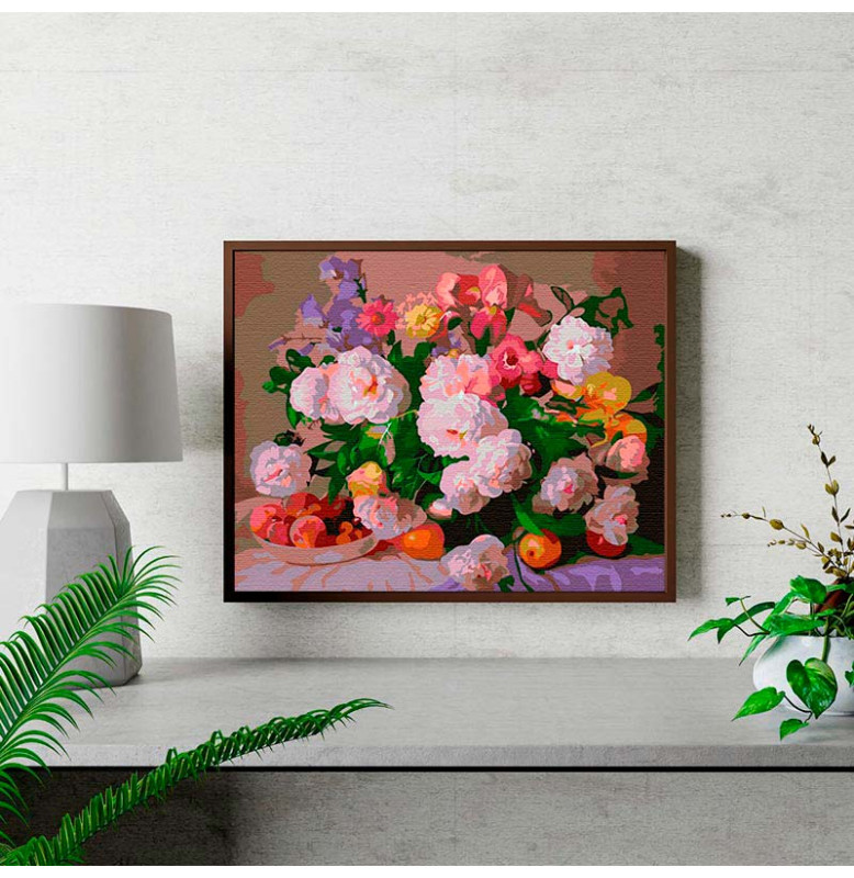 Картина за номерами квіти "Півонії та іриси" LC40105 Не пропустіть шанс купити унікальну Картину за номерами із зображенням квітів, створену ArtCraft . Ця чудова картина доступна для замовлення і стане справжньою окрасою вашого будинку. Чому варто замовити саме цю картину? Ця картина виконана з урахуванням усіх деталей та краси кольорів. Вона подарує вашому будинку атмосферу весни та свіжості. Висока якість матеріалів: Наша картина створена на міцному полотні високої якості, яке збереже яскраві та насичені кольори. Акрилові фарби, що входять до комплекту, забезпечують видатну якість та стійкість кольорів, що робить ваше мистецтво довговічним та барвистим. Ідеальні розміри: Ця картина ідеально впишеться у будь-який інтер'єр завдяки своїм універсальним для будь-якого приміщення розмірам. Простота замовлення: Процес замовлення швидкий та легкий. Просто додайте товар до кошика та оформіть замовлення, щоб найближчим часом ваша картина була у вас. Створіть мистецтво самі: Навіть якщо у вас немає досвіду у живопису, ви зможете легко створити цю картину завдяки номерованим областям та включеним інструкціям. Замовте зараз і почніть творити! Відмінний подарунок: Ця картина стане ідеальним подарунком для любителів квітів та мистецтва. Замовте її як подарунок для близької людини та порадуйте її унікальним презентом. Не пропустіть можливість купити цю красиву картину та додати нотку мистецтва з природою до вашої оселі. Замовте зараз, щоб почати створювати свій власний шедевр із зображенням чудових кольорів!