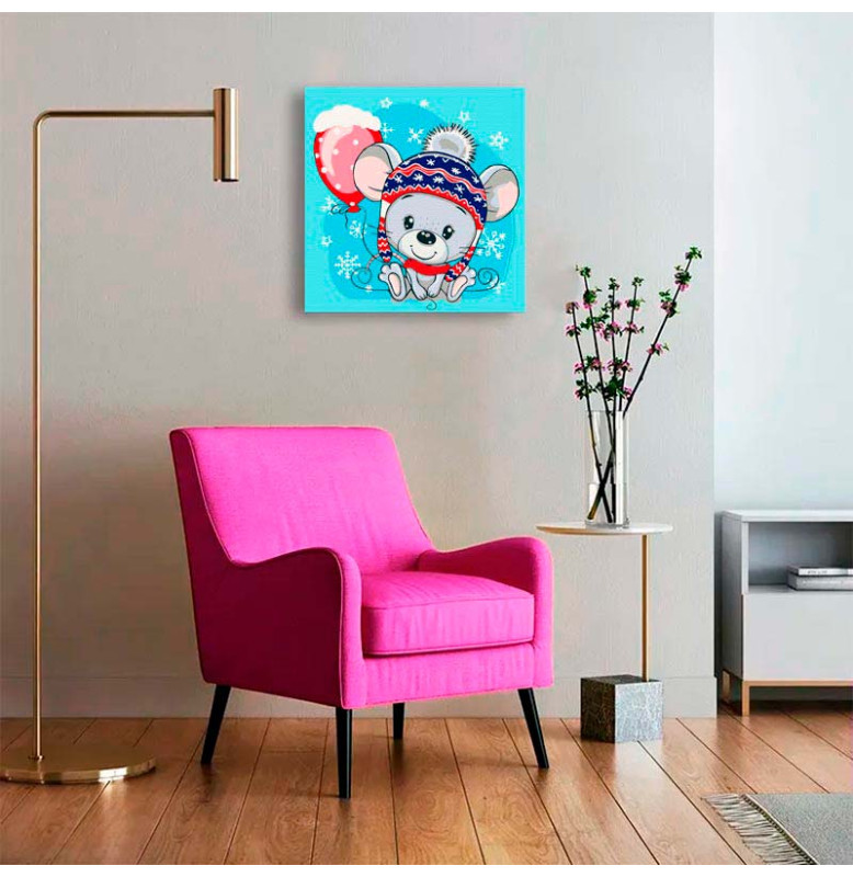 Картина за номерами "Мишеня з кулькою" 30*30 см