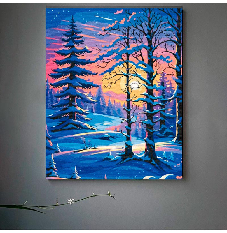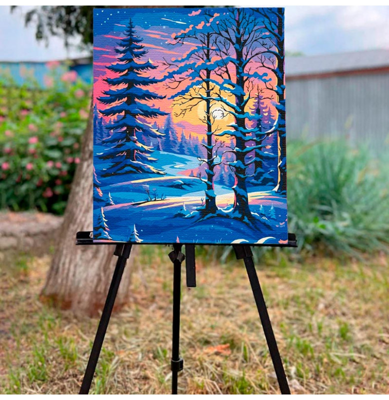За допомогою картин за номерами, всі без винятку зможуть оволодіти мистецтвом живопису, відчути радість творчості і розкрити свої внутрішні таланти. Ці набори для творчості стануть хорошим подарунком незалежно від віку, статі чи професії. Вони слугують відмінним інструментом для розвитку дрібної моторики і творчого мислення у дітей. І найважливіше, картини за номерами наділені анти-стрес ефектом. До набору входить: 1. Полотно на дерев'яному підрамнику з нанесеними контурами та цифрами. Поєднання збалансованого складу полотна на бавовняній основі, спеціально розробленого акрилового грунту та механічна натяжна – гарантує пружність полотна та стійкість до провисання. 2. Комплект пензликів (3 шт.) різної товщини зроблені з еластичного нейлону. Такими пензликами дуже зручно замальовувати всі контури. 3. Акрилові фарби виготовлені з екологічно чистих матеріалів. Ми створюємо яскраві і барвисті кольори, стійкі до вицвітання. Кожен набір для малювання по номерам упакований в герметичну упаковку.