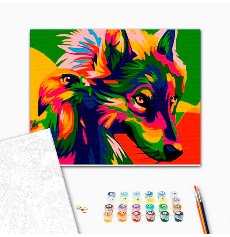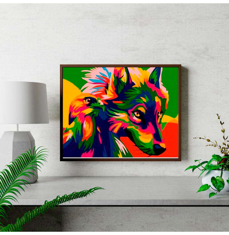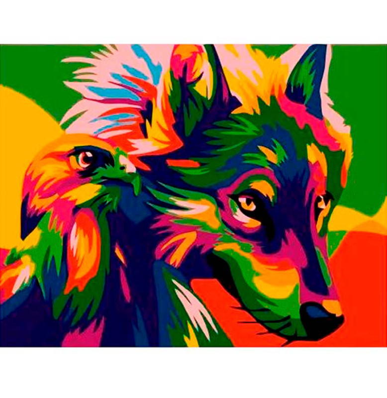Картина за номерами Попарт-вовк і орел Strateg 40х50 см DY005