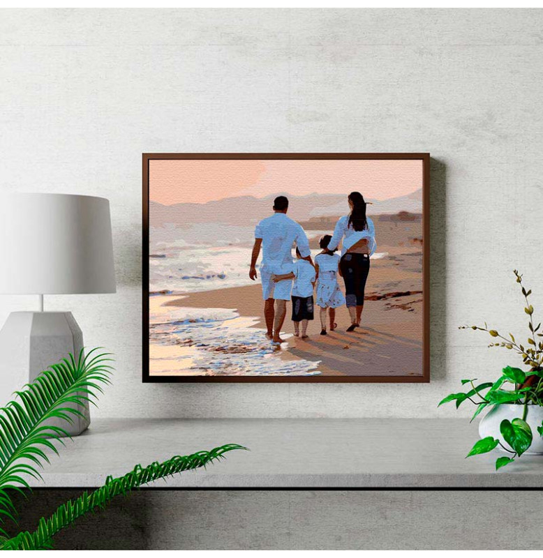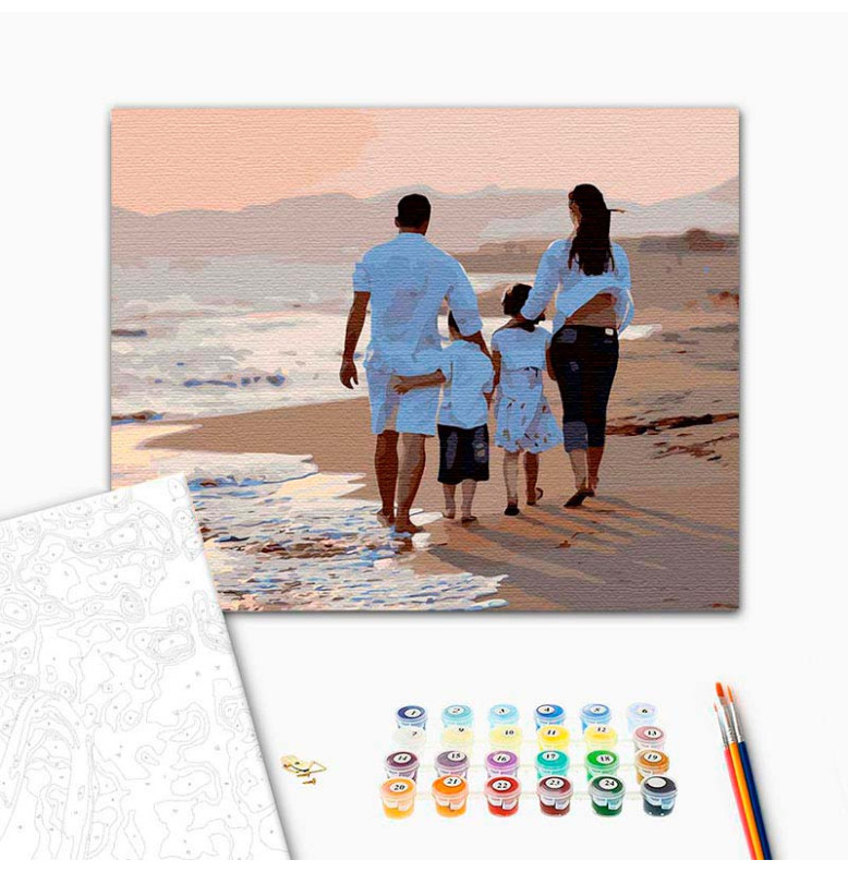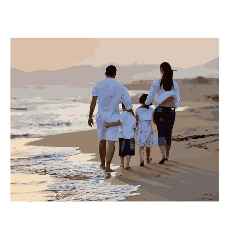 Картина за номерами Сімейна прогулянка берегом Strateg на кольоровому фоні VA-2665.