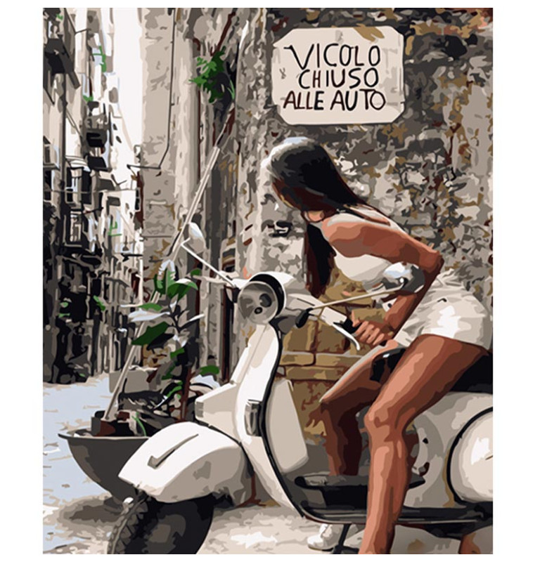 Картина по номерам Strateg ПРЕМИУМ Девушка на мопеде размером 40х50 см (HH079)