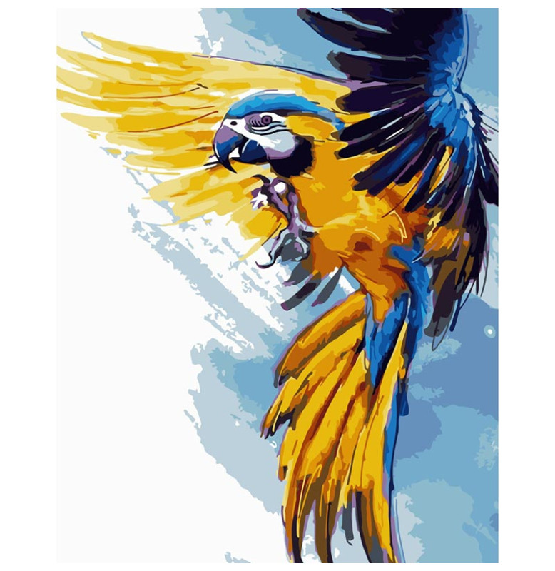 Картина по номерам Strateg ПРЕМИУМ Желто-синий попугай с лаком размером 40х50 см (SY6757)