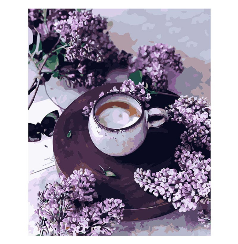 Картина по номерам Strateg ПРЕМИУМ Кофе с сиренью с лаком размером 40х50 см VA-1118