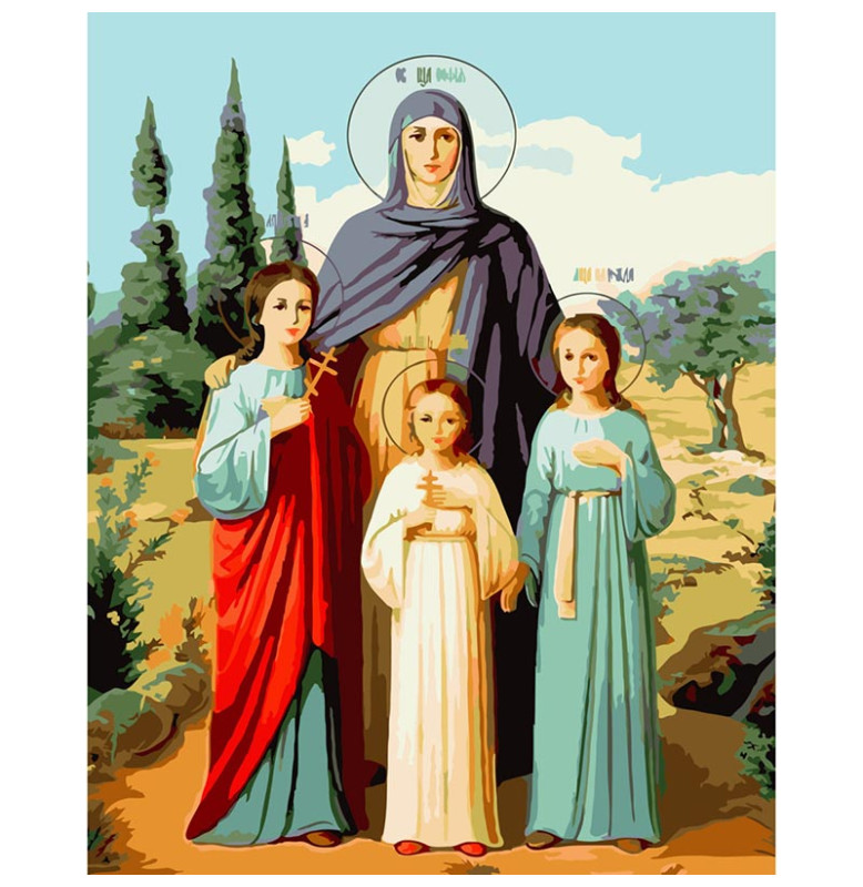Картина по номерам Strateg ПРЕМИУМ Вера Надежда Любовь и их мать София с лаком размером 40х50 см (SY6712)