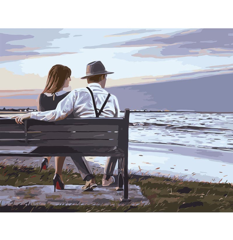Картина по номерам Strateg ПРЕМИУМ Влюбленные на скамейке с лаком размером 40х50 см VA-2625