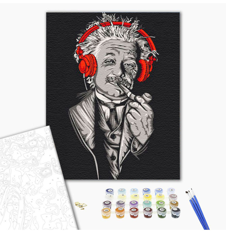 Картина за номерами з лаком ArtCraft "Ейнштейн у навушниках" 40*50 см 10314-AC